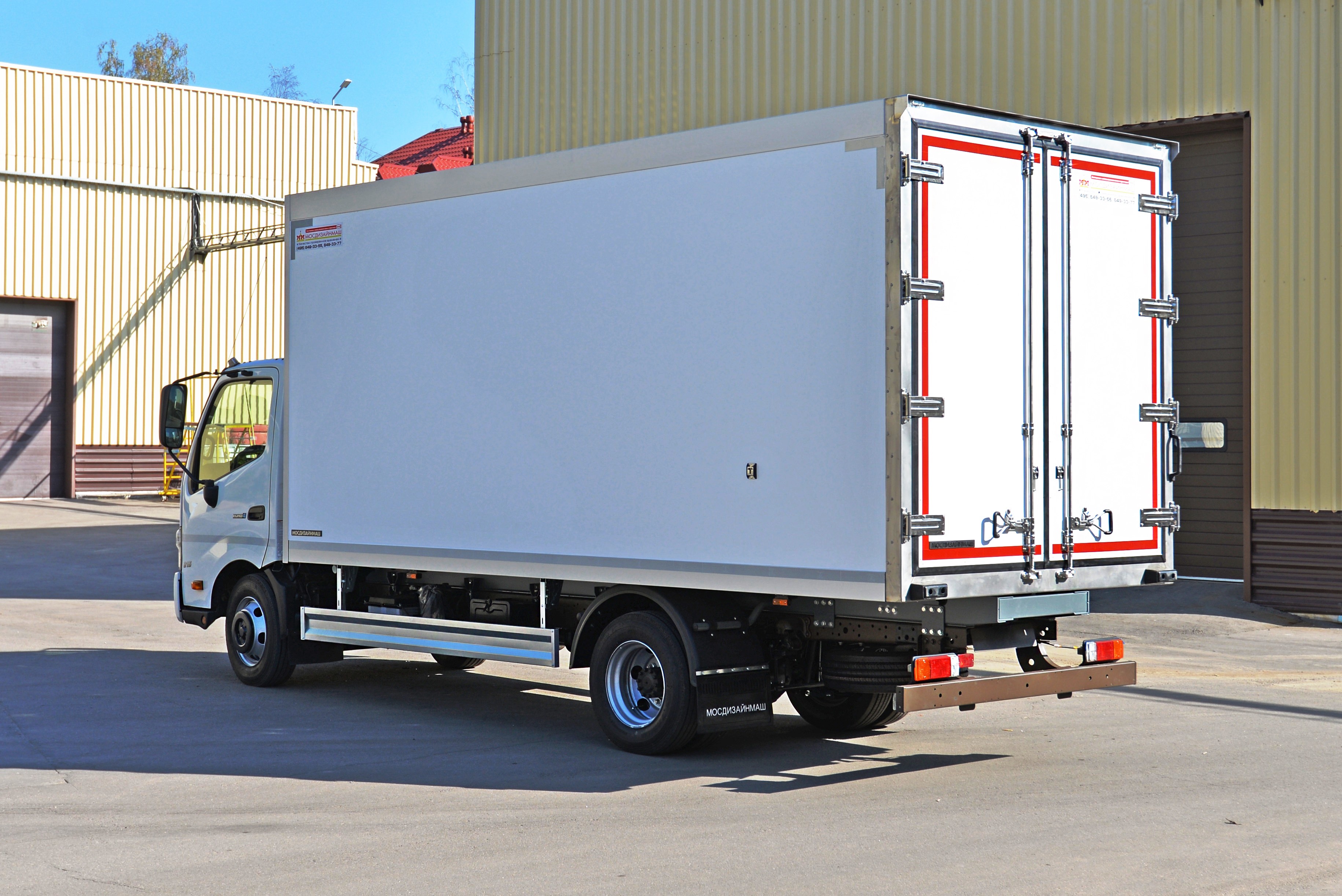 Компания «Мосдизайнмаш» постоянно совершенствует и расширяет ассортимент выпускаемой специальной техники, помогая осуществлять процесс транспортировки грузов максимально комфортно. Так, в сентябре был представлен новый изотермический фургон-тушевоз на базе шасси грузовика Hino 300 с холодильно-обогревательной установкой Zanotti.