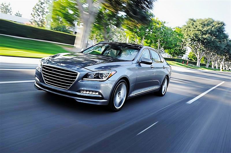 Базовая модификация Hyundai Genesis 2015 модельного года включает систему экстренного торможения, круиз-контроль, 8-дюймовый сенсорный дисплей, датчик контроля углекислого газа.