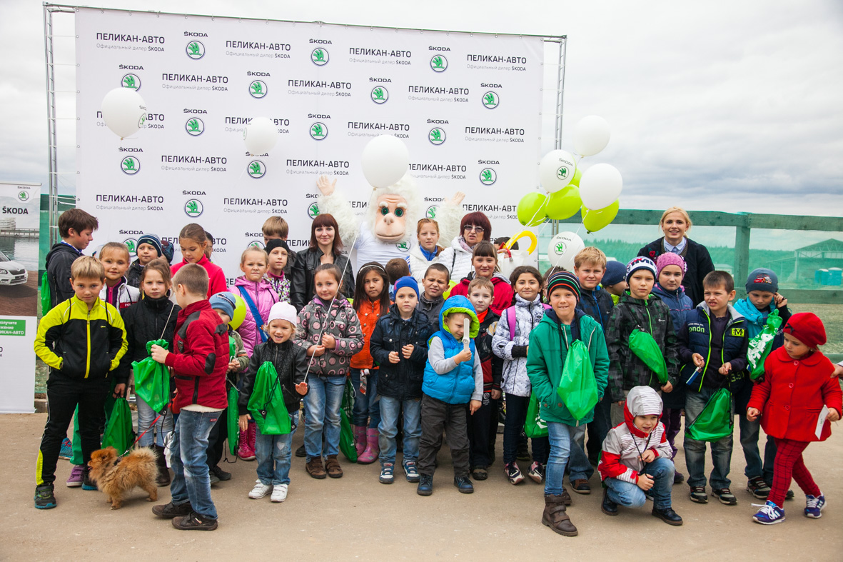 Завершился праздник групповой фотографией рядом с автомобилем SKODA Yeti в фирменной оклейке проекта «SKODA Кроха».