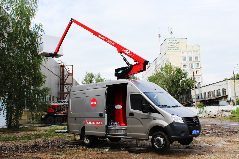 Автомобильный завод «Чайка-Сервис» расширяет номенклатуру производимых изделий ежегодно и очередным доказательством, подтверждающим это, стал новый телескопический автогидроподъемник Чайка-Socage 12VT установленный на базу цельнометаллического фургона ГАЗель NEXT.