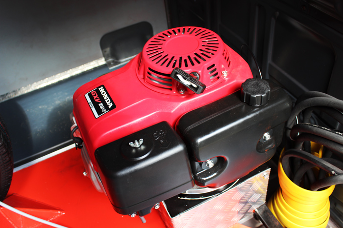 Принцип работы подъемника несколько отличается от предыдущих моделей, которые функционируют с помощью коробки отбора мощности (КОМ). Чайка-Socage 12VT работает за счет использования бензинового генератора, который установлен подле колонны АГП, то есть в фургоне. По желанию заказчика генератор также может быть дизельным или электрическим.
