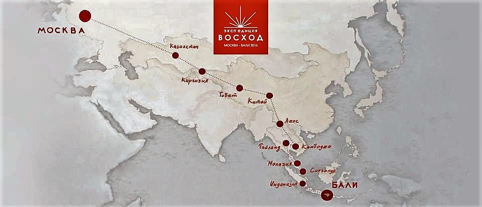 Маршрут экспедиции составил более 22000 км, прошел через Россию, Казахстан, Киргизию, Китай, западный и восточный Тибет, Лаос, Таиланд, Малайзию, Сингапур и Индонезию, включал десятки горных перевалов за 5000 м, пересечение экватора, три переправы через океан. На финише ребята сыграли с аншлагом живое шоу в Чангу (Бали), впереди еще несколько концертов на острове и welcome-шоу в Москве в марте.