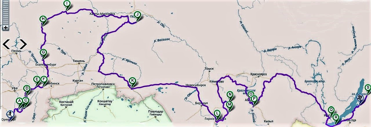 1. Весь маршрут. От Оренбурга до поселка Усть-Баргузин.