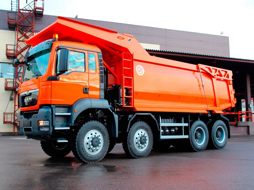 - MAN TGS 41.480 8х8 BB-WW c самосвальным кузовом БЕЦЕМА для перевозки скальных пород