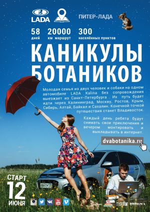 В-третьих – эта влюбленная пара «ботаников» оказалась еще и творчески талантливой и продуктивной. Исходя из описания проекта (блог - www.dvabotanika.ru) - молодые путешественники будут ежедневно вести трансляцию в социальных сетях о своих приключения, личный блог с расходами за день. Помимо всего этого, в режиме «реалити-шоу», они ежедневно будут снимать видеодневник и ежедневно публиковать свои видео в интернете.